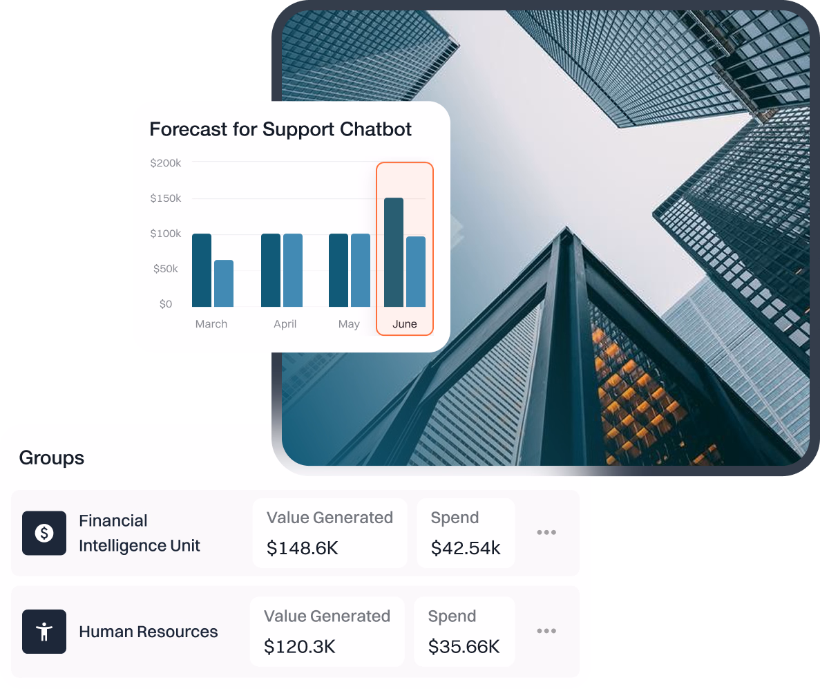 From customer-facing agents to internal automation to digital workers, see costs and ROI by business unit, team, or use case. Prove value to the board, forecast budgets accurately, and scale what actually delivers.
